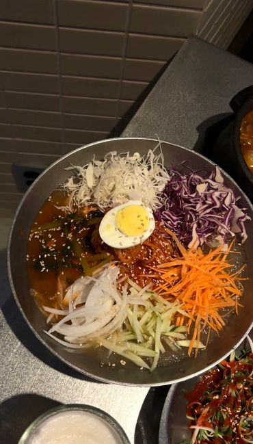 Cold noodles tossed with Nok’s perilla oil and premium raw beef